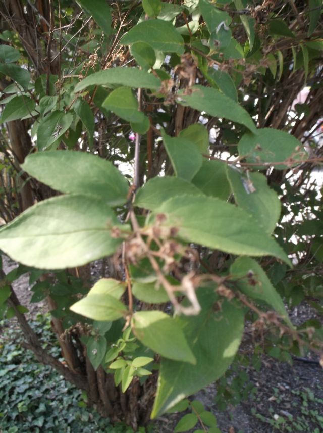 The sharply-toothed, pointed-ovate leaves, up to 5 x 1.7 inches in size, are dull deep green with little fall color.